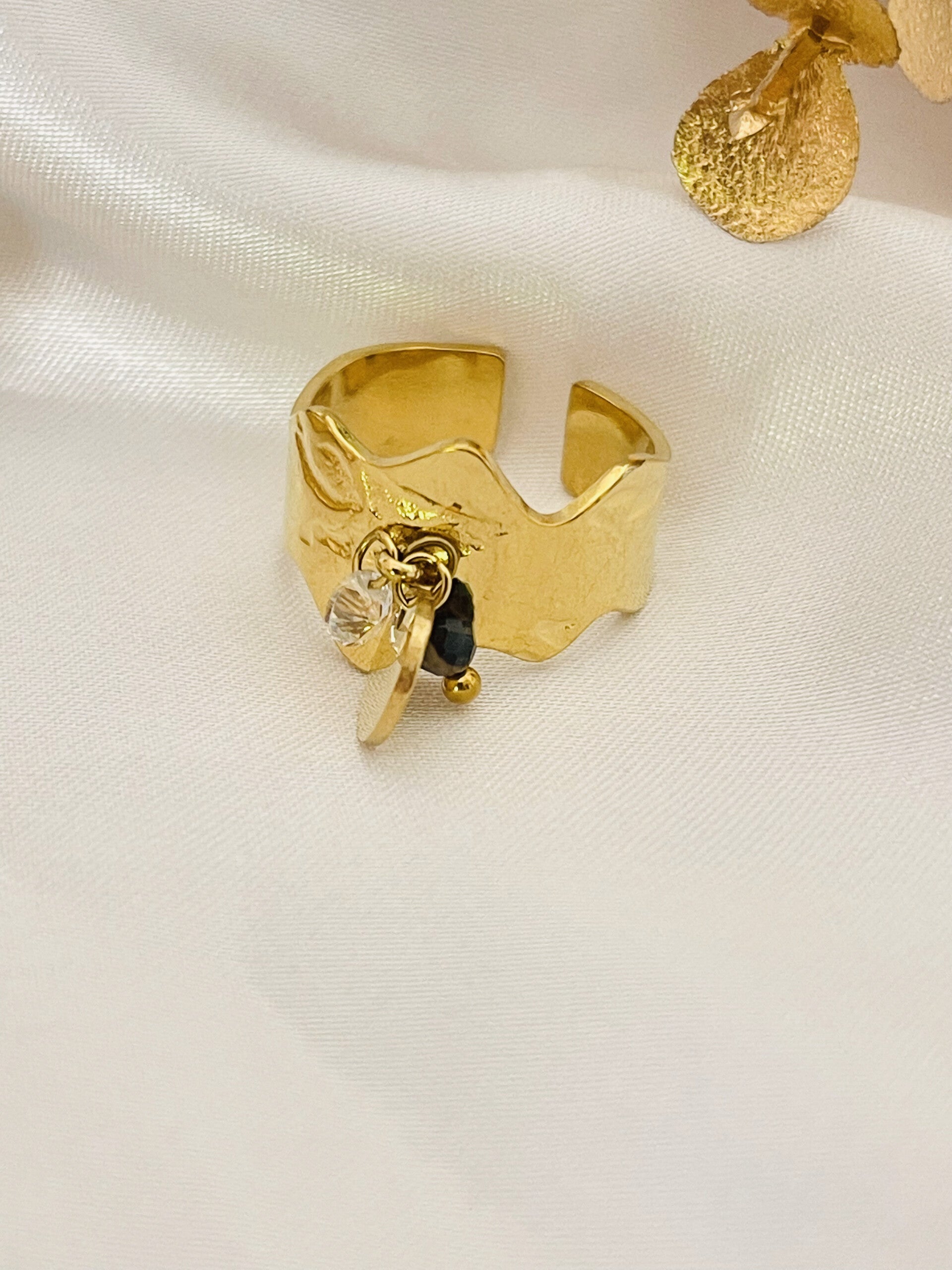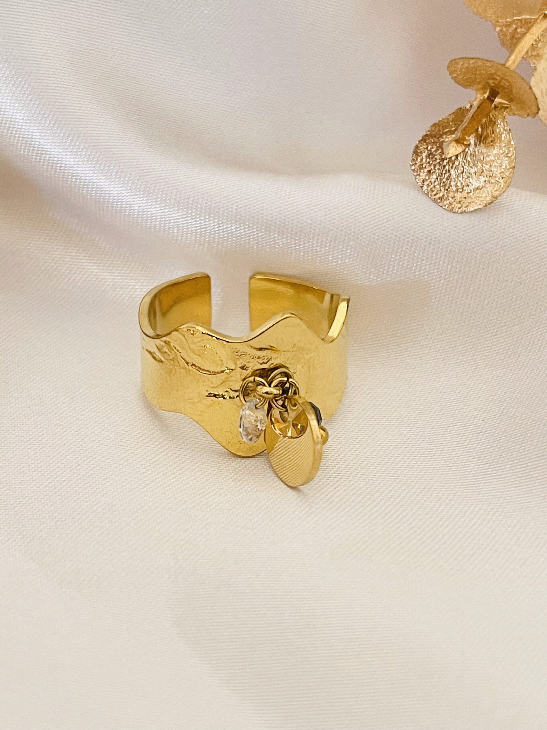 Bague dorée ajustable breloques